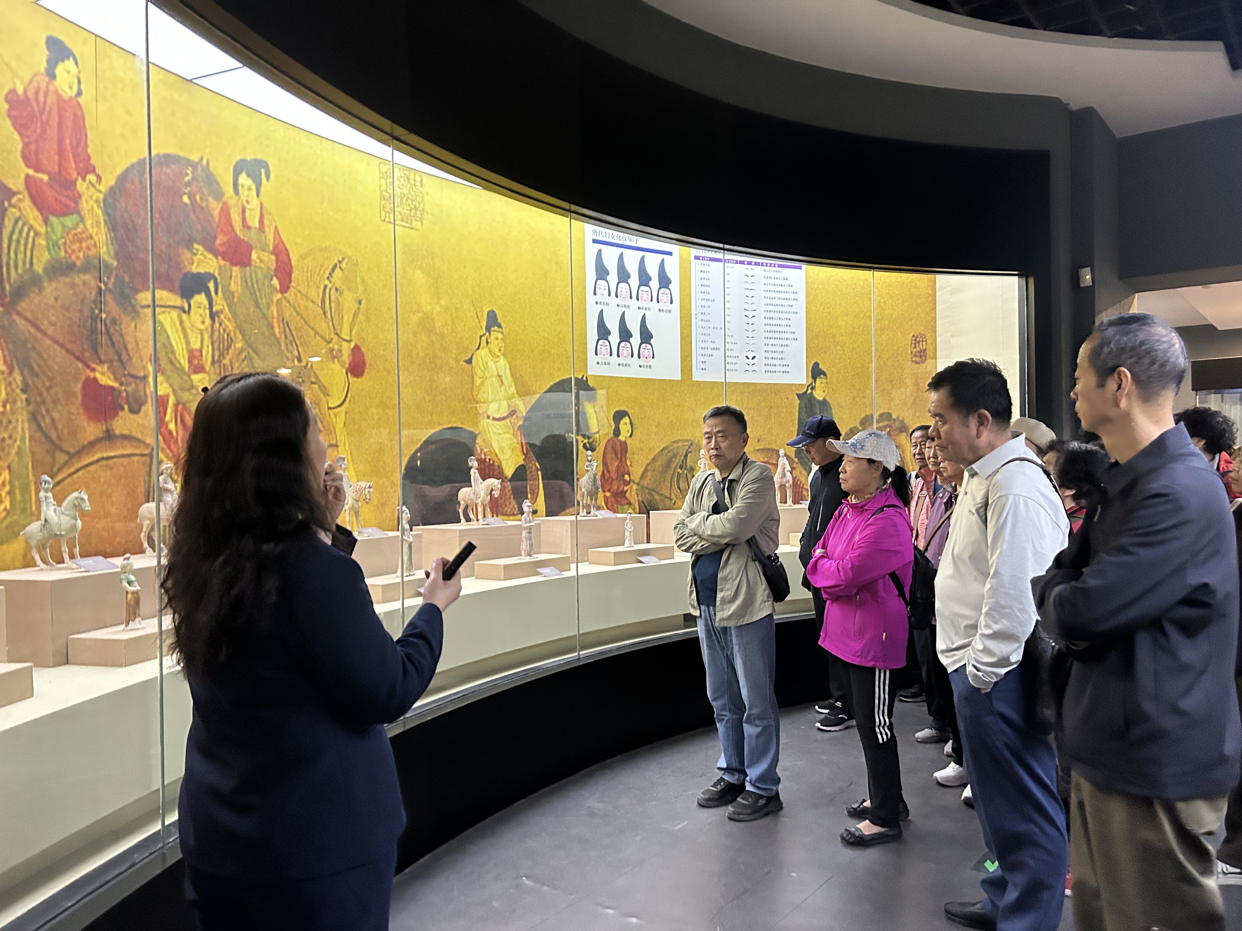 上午10时,退休教职工来到昭陵博物馆进行参观学习。在讲解员的引导下,退休教职工深入参观了馆内珍藏的彩绘釉陶文武官俑、唐代墓葬壁画以及昭陵碑林历代碑刻等重要文物。透过这些跨越千年的文物遗存,大家深切领略了唐代历史文化的深厚底蕴与独特魅力,更为其中展现的中华民族卓越智慧与开放包容的气度所触动,进一步增强了文化自信。
